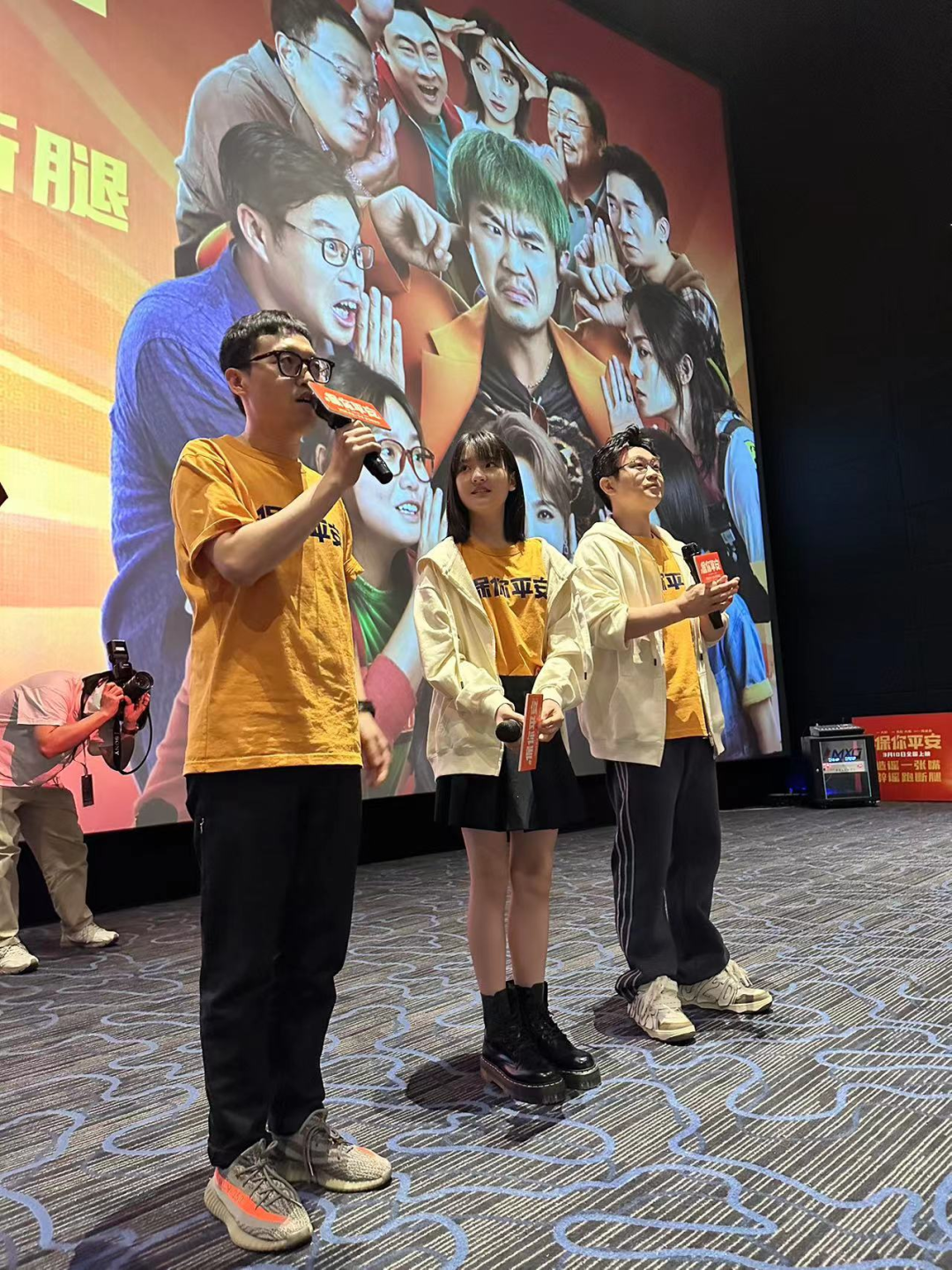 3月9日下午,大鹏携自导自演的新作《保你平安》空降德信影城杭州之翼店!导演大鹏、编剧苏彪、演员王圣迪出席了本次电影见面会。路演现场感动不停,笑声不断,观众热情频频不断。